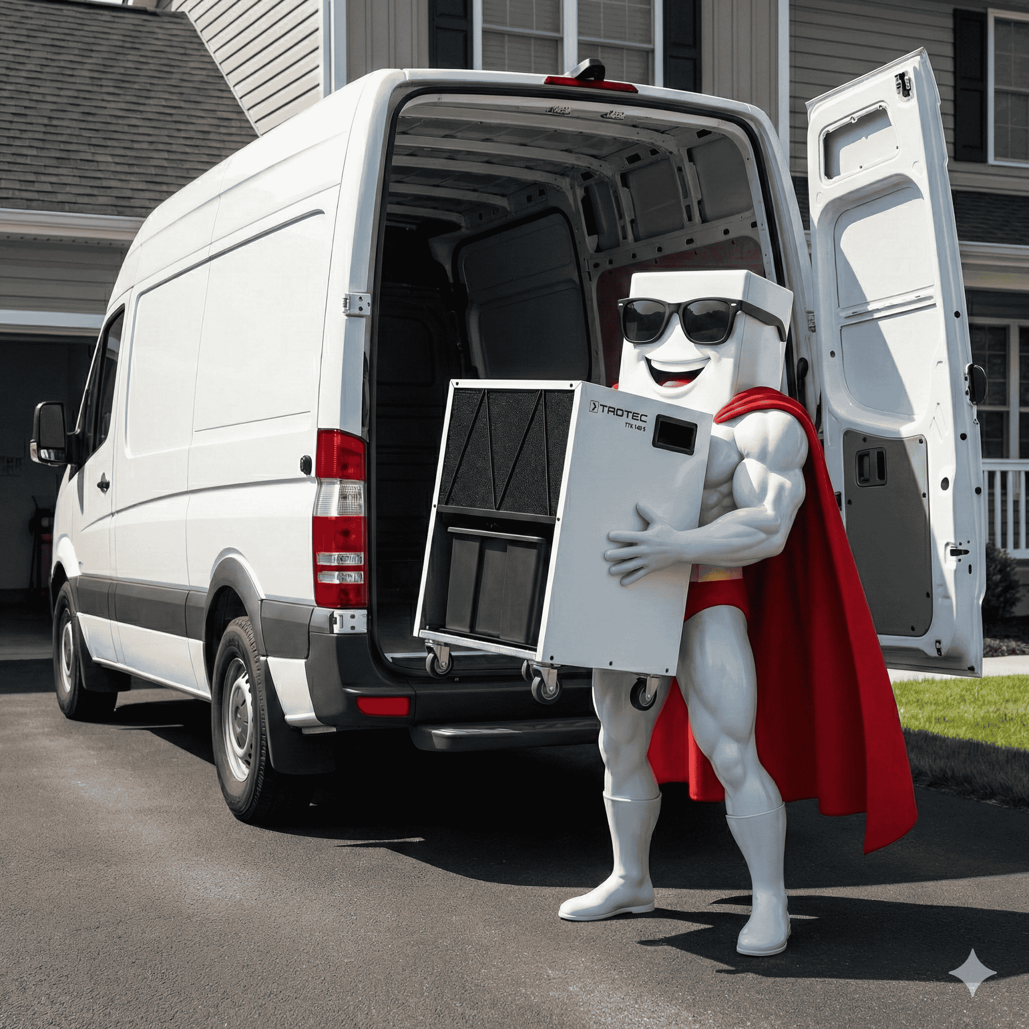 Sparen Sie Ihren Rücken. Dry Dan liefert den 35kg-Bautrockner direkt vor Ihre Tür